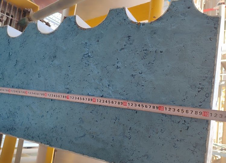 Giai đoạn 1: Đục phá lớp bề mặt (Lớp ngoài cùng) Sử dụng thiết bị chuyên dụng để loại bỏ lớp bê tông đã bị biến tính, nứt gãy. Quá trình này được kiểm soát nghiêm ngặt để không làm tổn thương cấu trúc neo (anchors) bên trong.