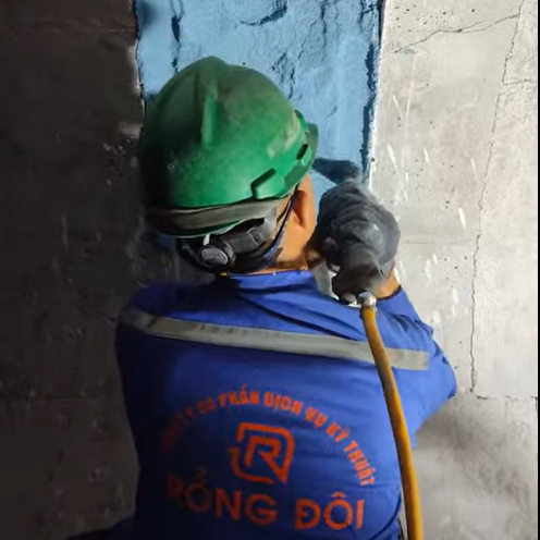 Giai đoạn 2: Làm sạch và chuẩn bị bề mặt Sau khi đục phá, bề mặt được làm sạch bụi bẩn và các mảng bám carbon. Đây là bước then chốt để đảm bảo độ bám dính tối ưu cho lớp vật tư mới.
